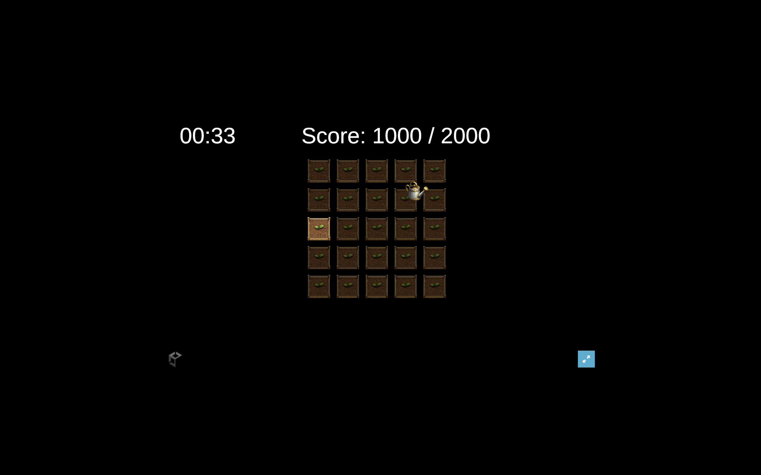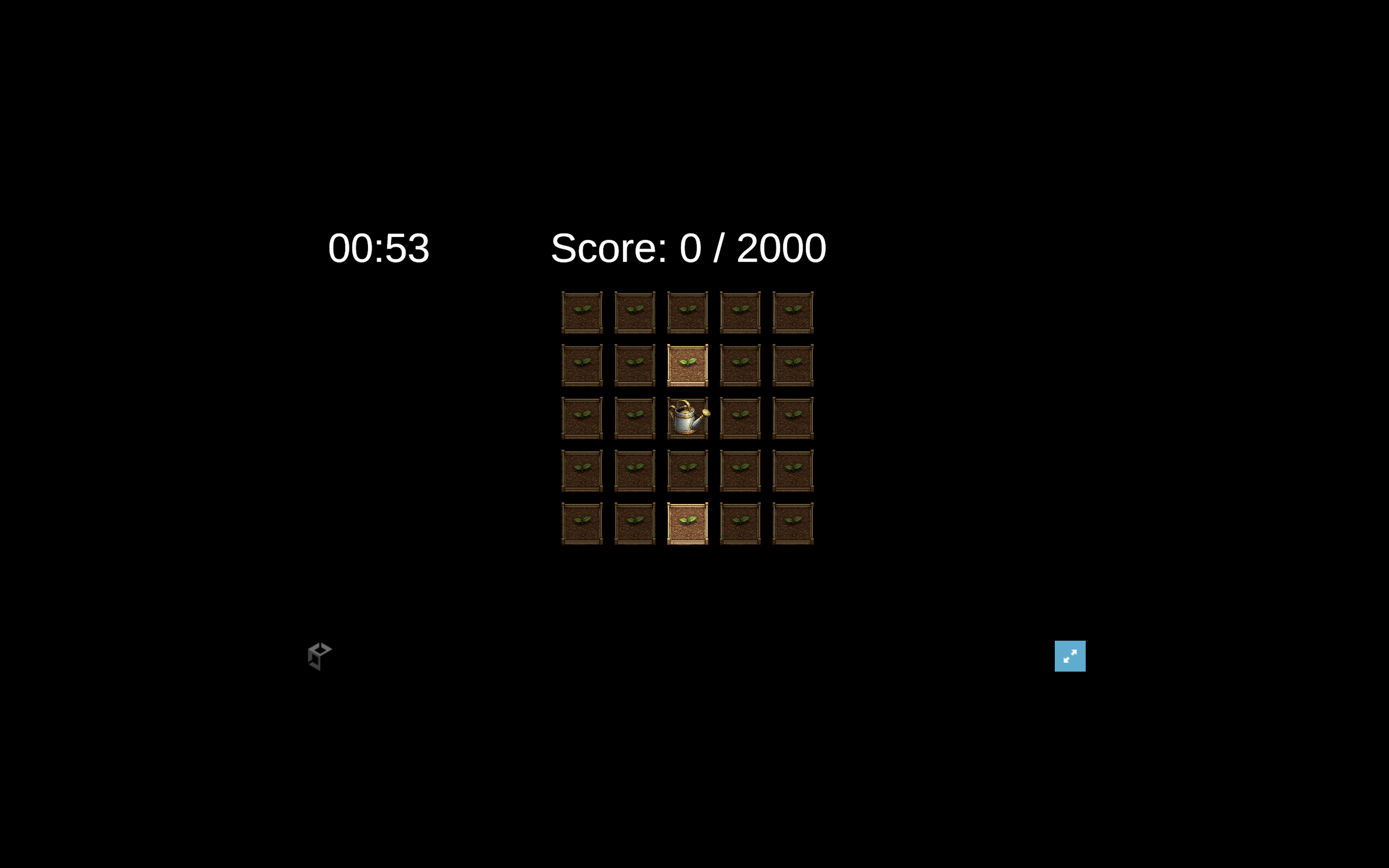 This is a vegetable garden where plants need watering. The watering can moves along a set path. Players use the left mouse button to tap and water, or hold down to speed up the watering can's movement. Water all 20 plants within 90 seconds to win!